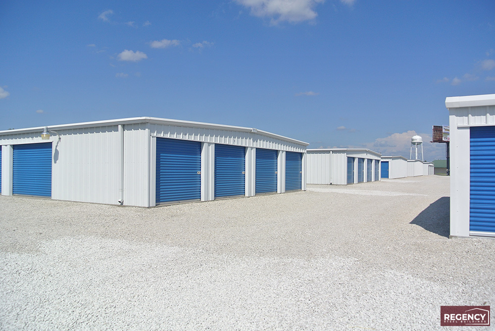 The mini storage buildings all feature long-lasting, corrosion-resistant Galvalume metal roofs with a 0.5:12 pitch. Solar guard roof insulation was added to help keep energy expenditures low and interior temperatures consistent. A vapor barrier can also be found in all of the storage building roofs, which reduces dampness and condensation. Also included in these mini storage projects are gutters and downspouts, wedge anchors and fasteners, 29-gauge partition panels with galvalume finishes and Missouri engineer-stamped building drawings.